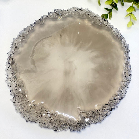 Large Round Resin Tray Mold with Crystal Edges - Silicone Craft Form for Chic Serving Platters