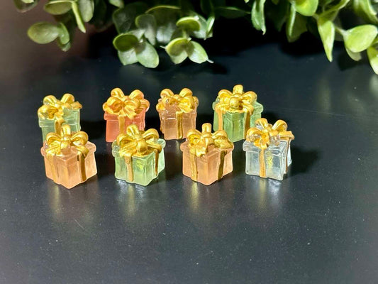 Mini Gift Box Charms – Transparent Resin with Gold Bow
