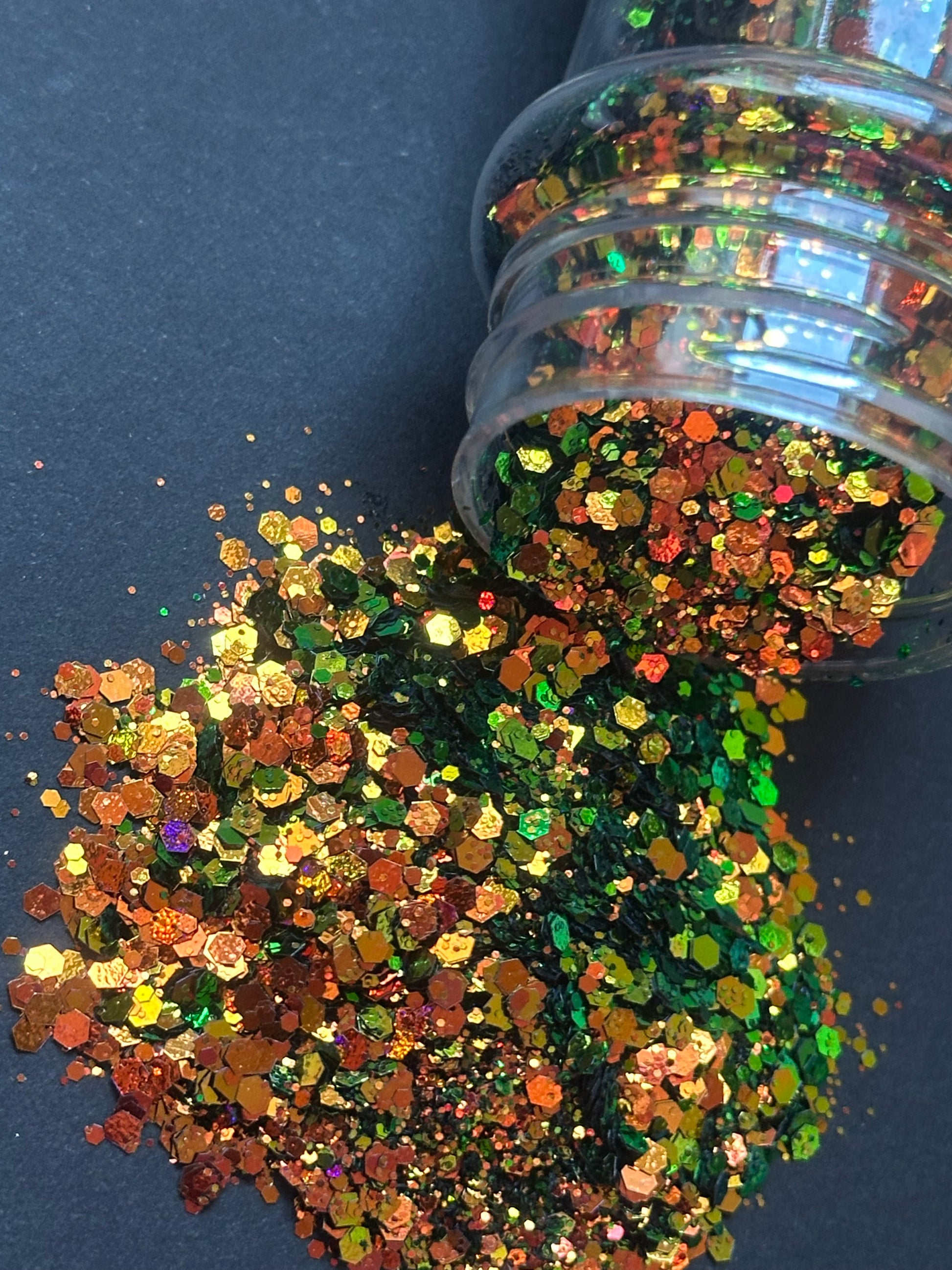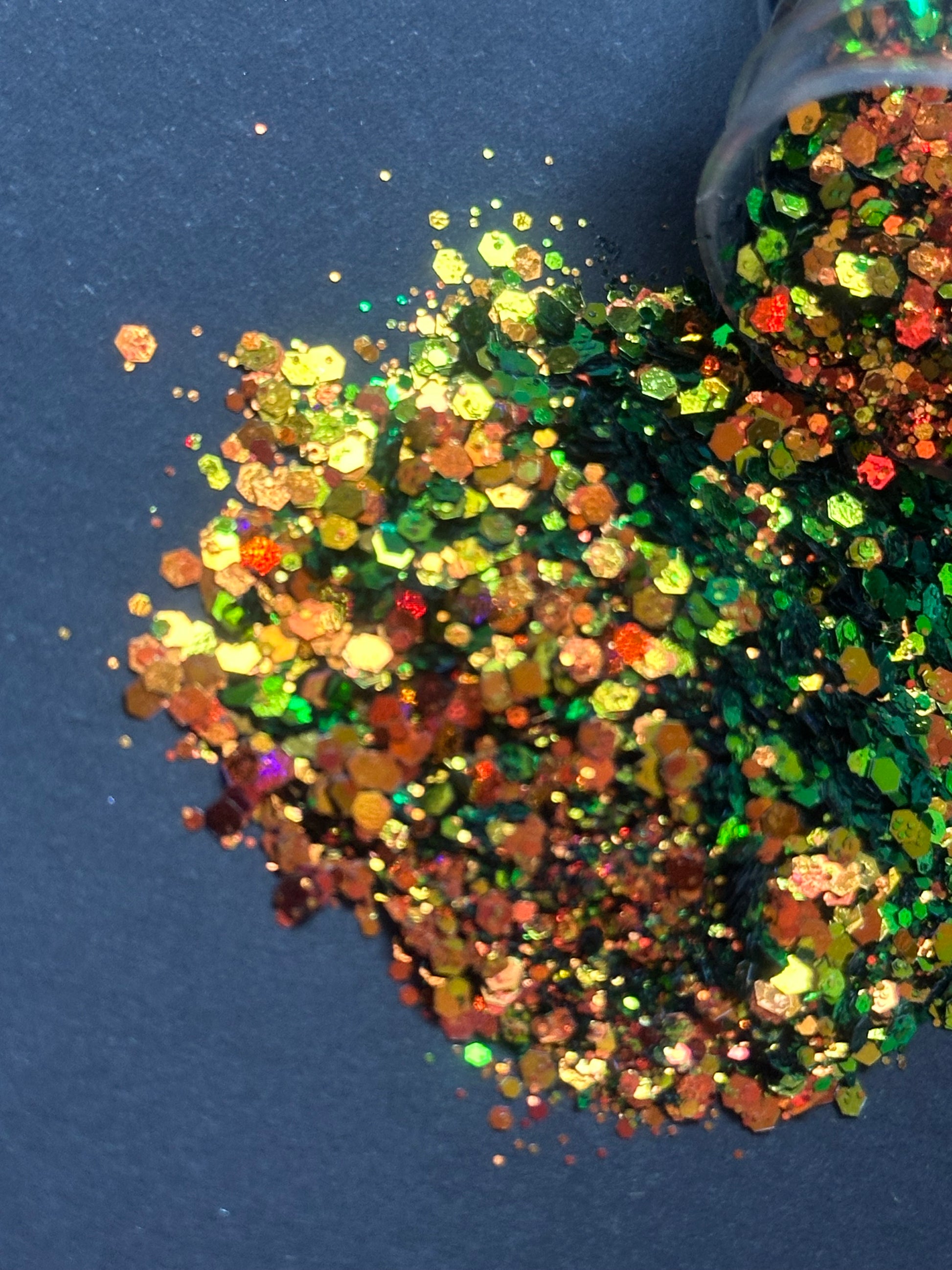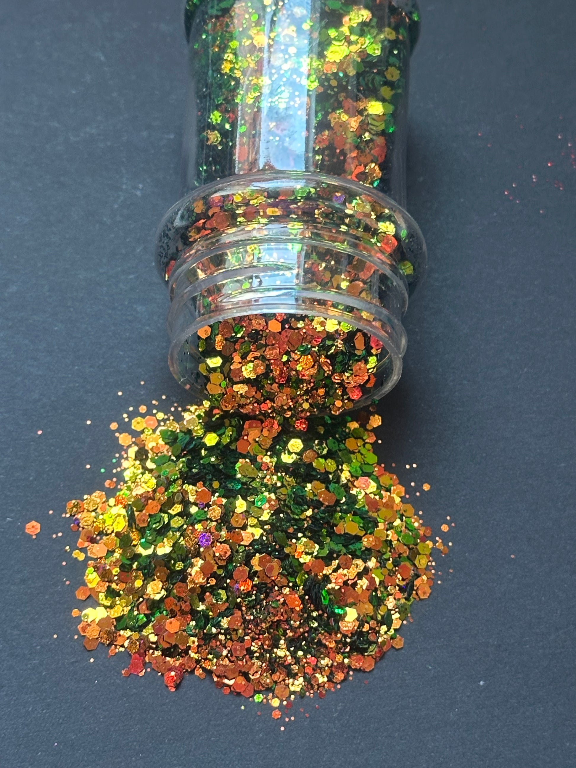 This stunning glitter shifts color beautifully from green to gold to orange, depending on the angle and lighting — creating a multidimensional sparkle that’s perfect for resin, slime, tumblers, and more.