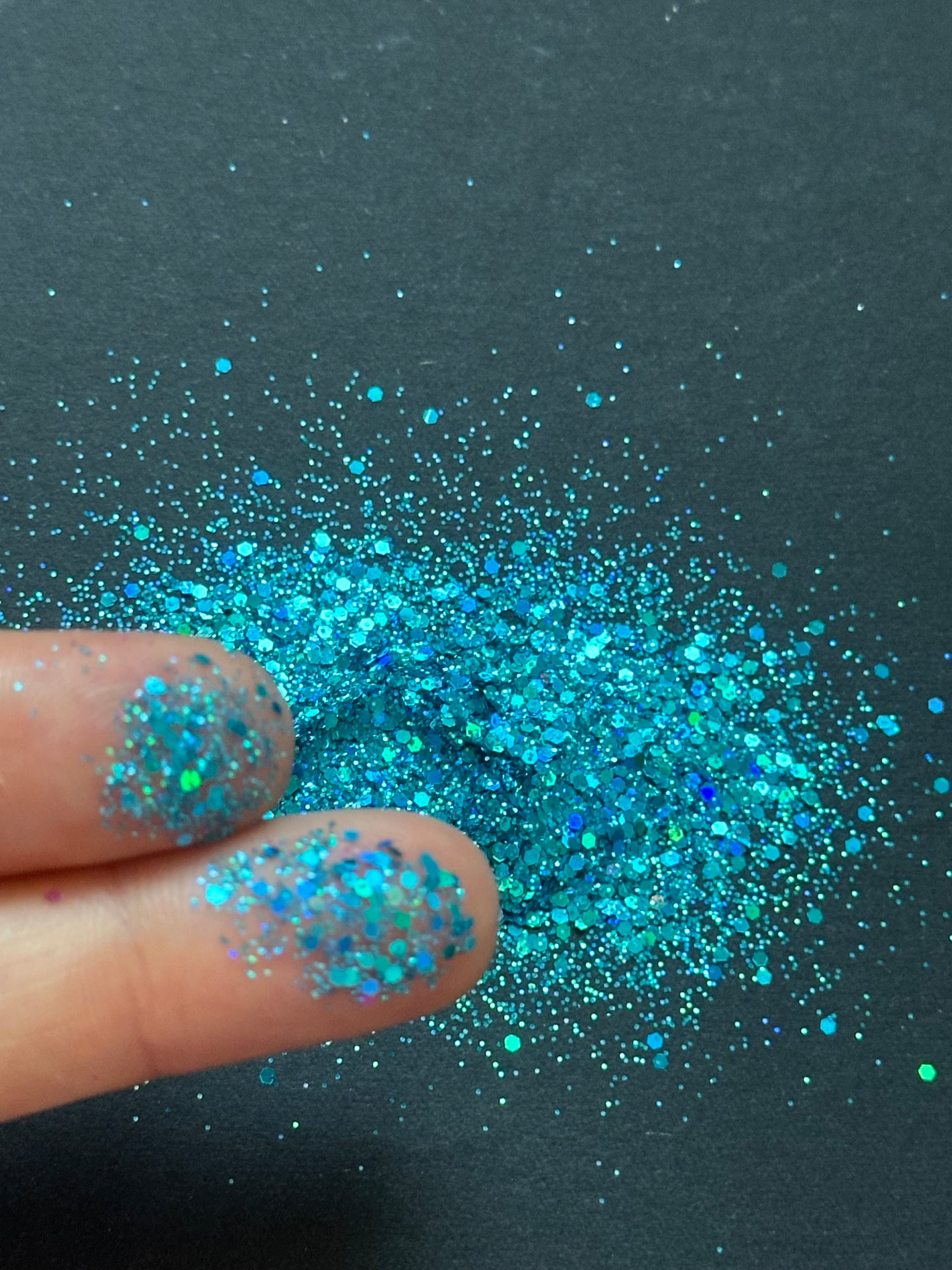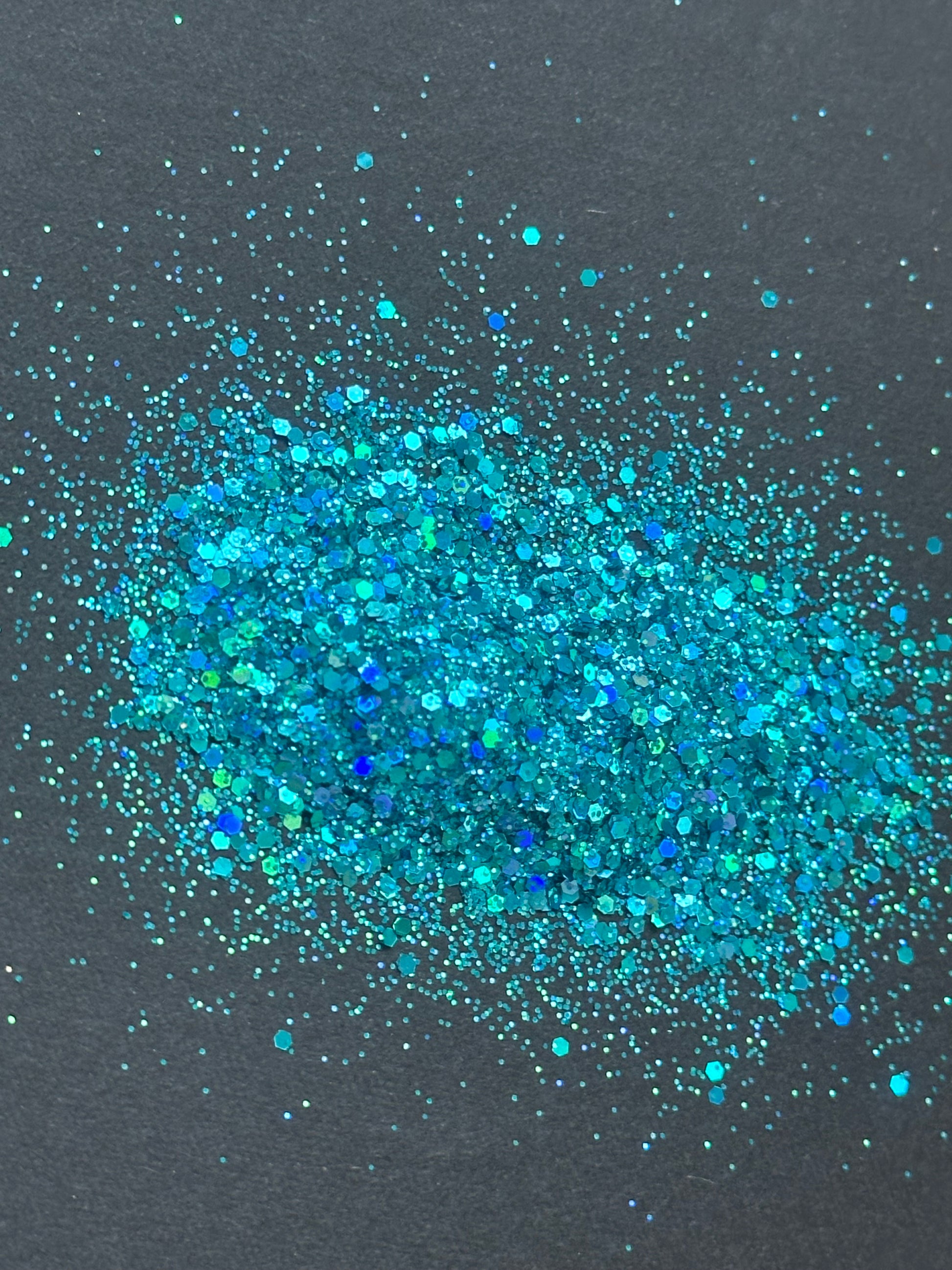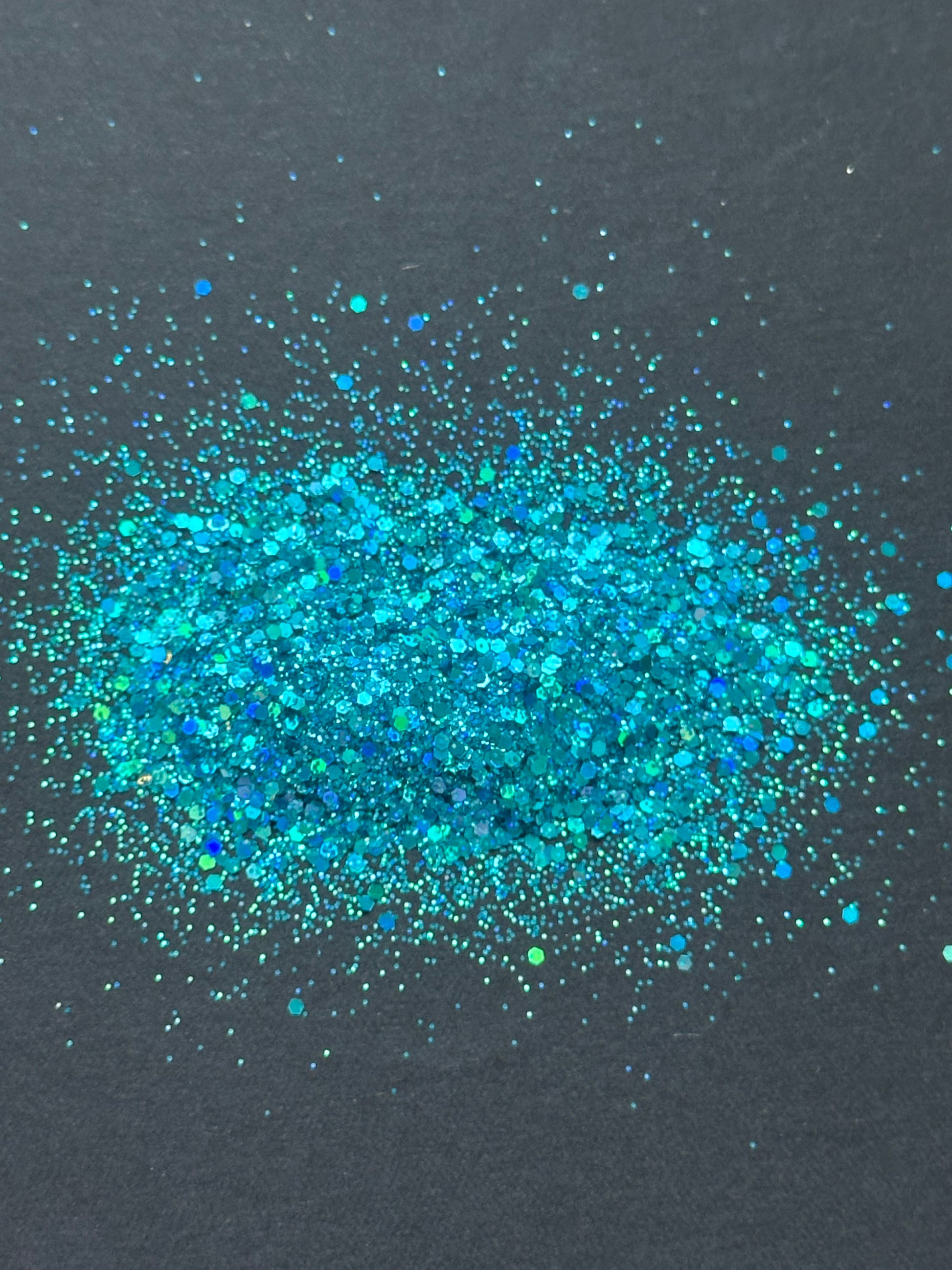 ✨ Add a dazzling sparkle to your creations with this Laser Blue Glitter Mix – a blend of fine and chunky flakes in a brilliant turquoise-blue tone. Mixed with reflective laser glitter for enhanced shine under bright light, this glitter adds serious WOW to any project!