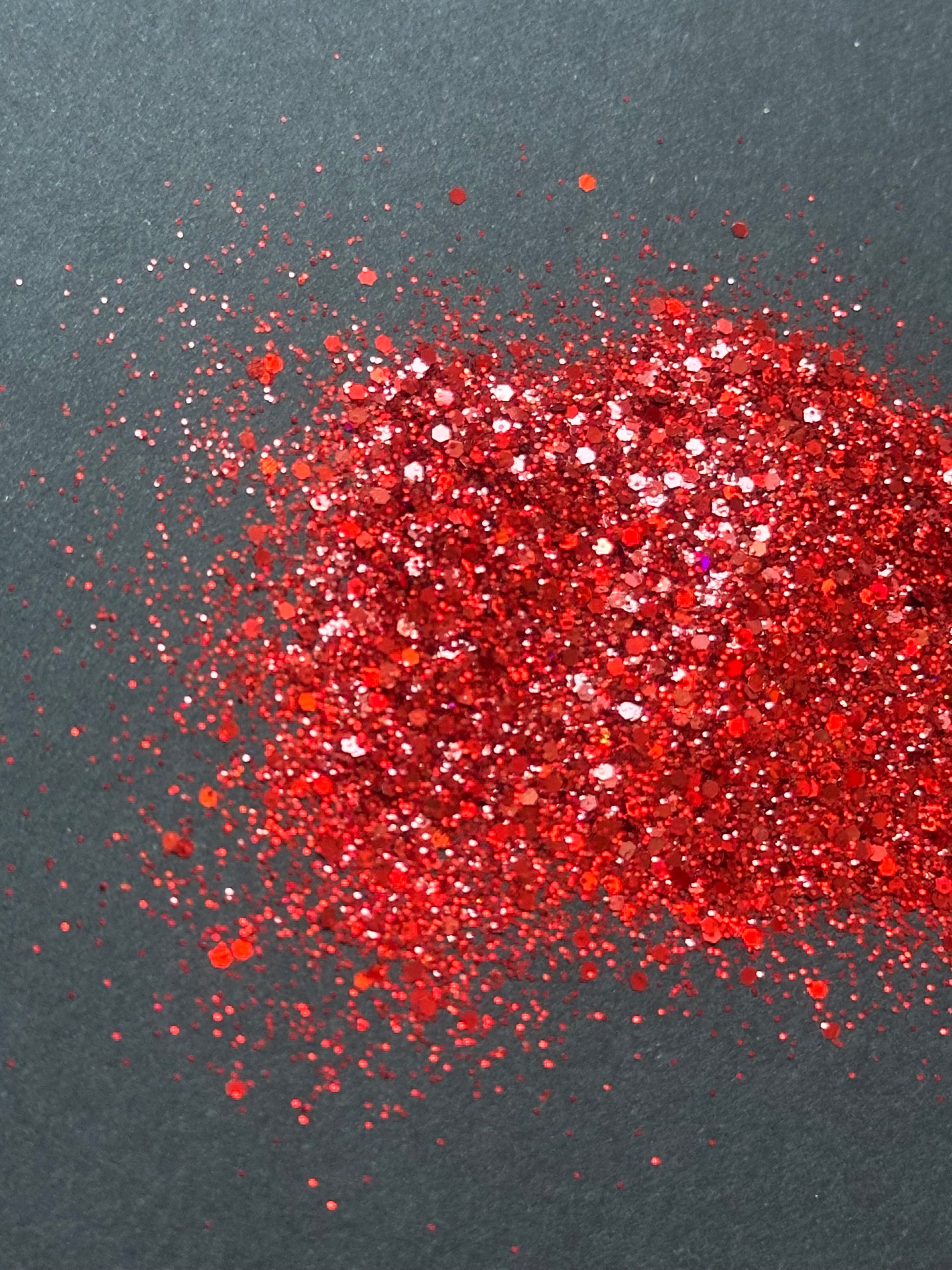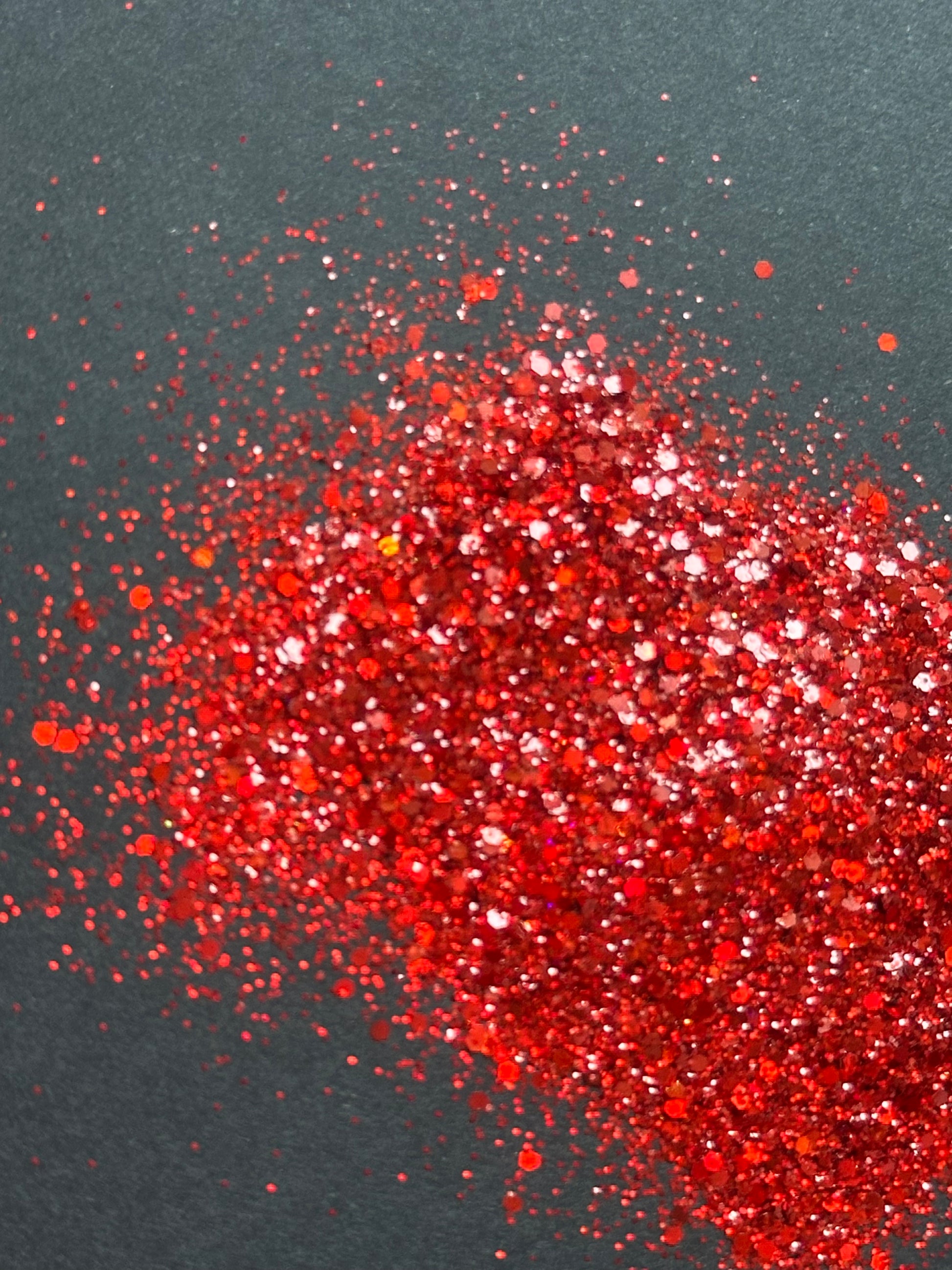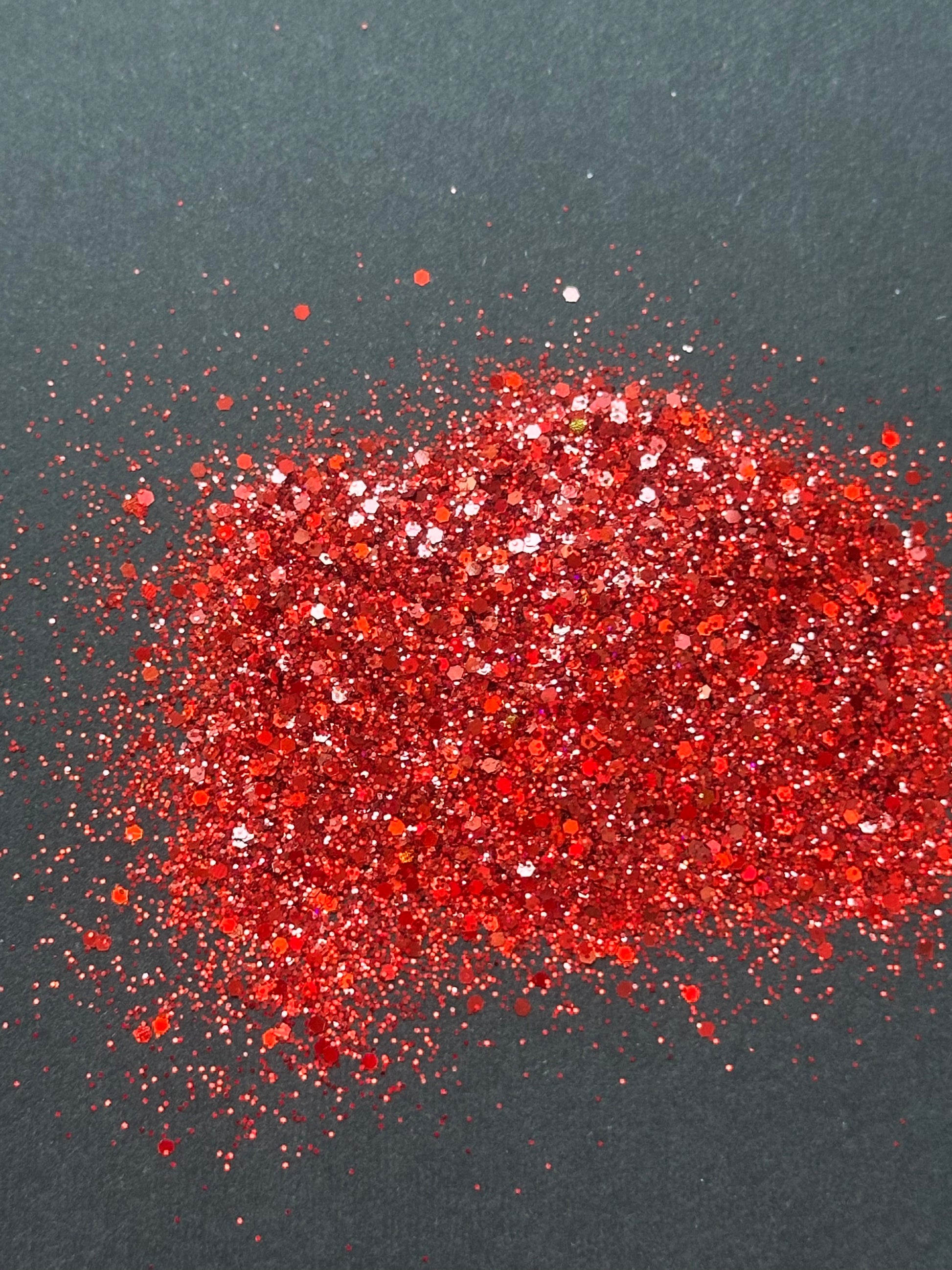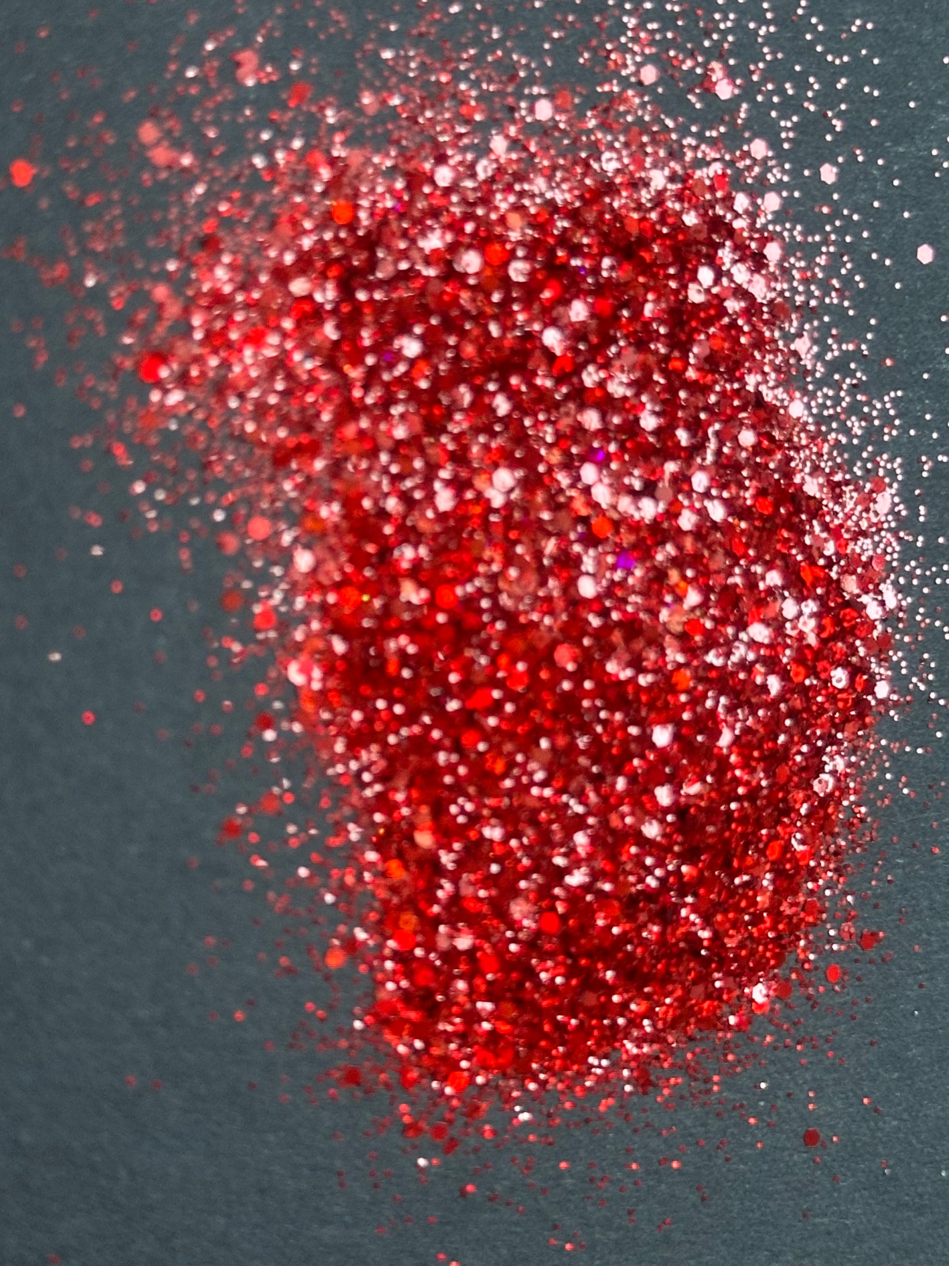 ❤️ Turn up the heat in your creative projects with this Red Glitter Mix – a stunning blend of fine and chunky glitter flakes in a rich, fiery red tone.
