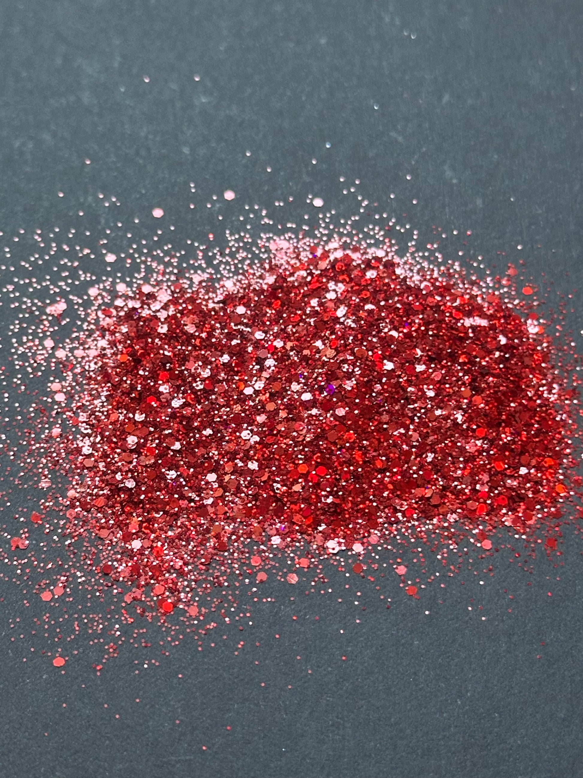 5g Red Glitter Mix – Fine and Chunky Iridescent Glitter