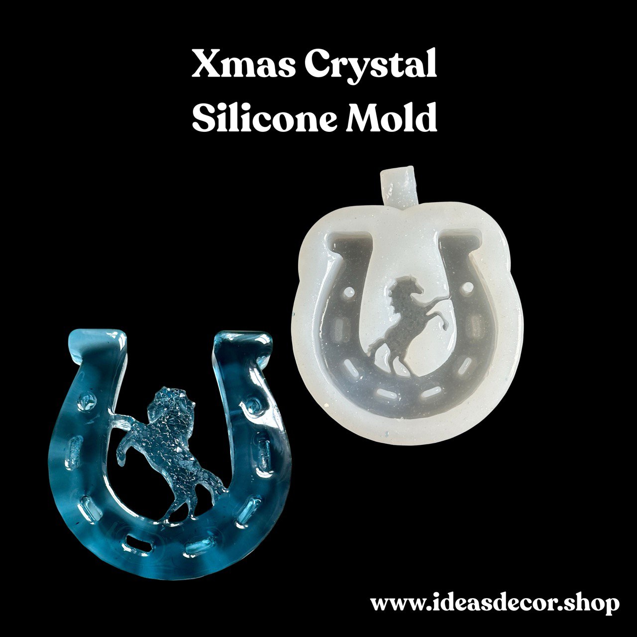Bring good luck and sparkle to your Christmas tree with this horseshoe-shaped silicone mold featuring a rearing horse and druzy crystal texture. Perfect for making shimmering resin ornaments, festive keychains, or magical holiday gifts.