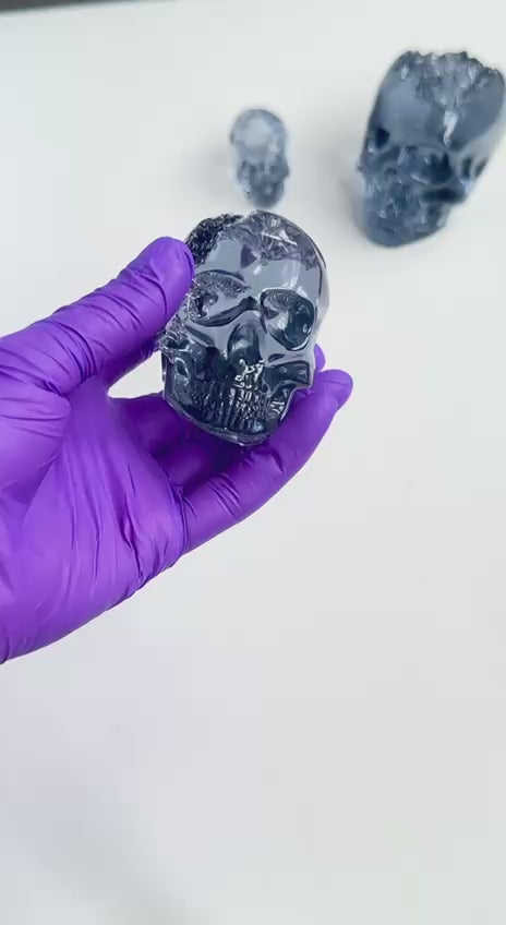 Add a mystical and gothic touch to your creations with our Medium Crystal Geode Skull Silicone Mold!