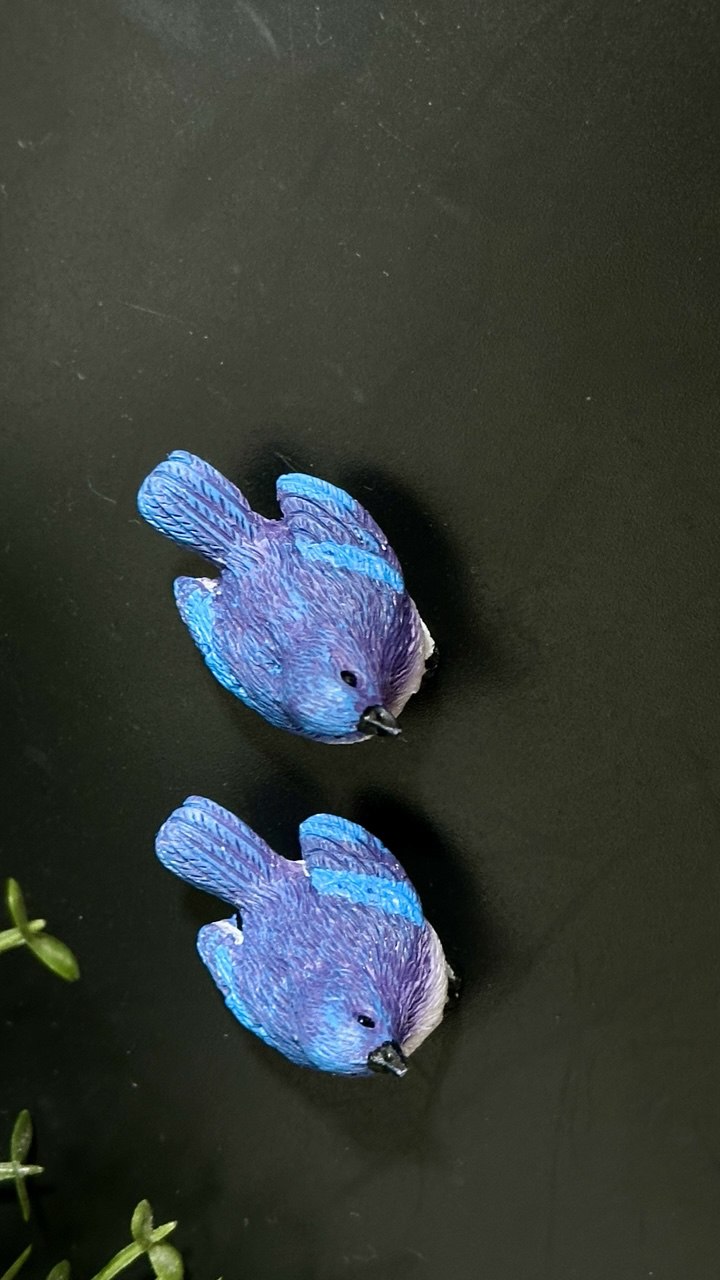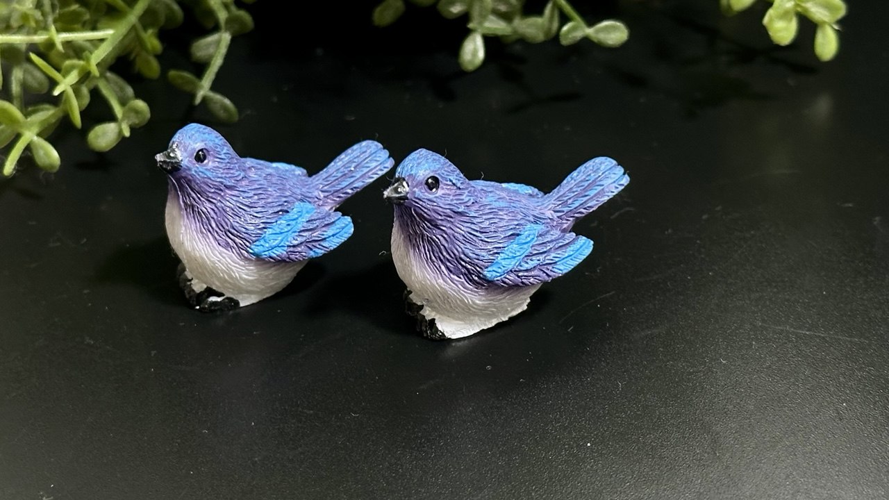 Create charming mini blue songbird figurines with this silicone mold featuring two birds.
