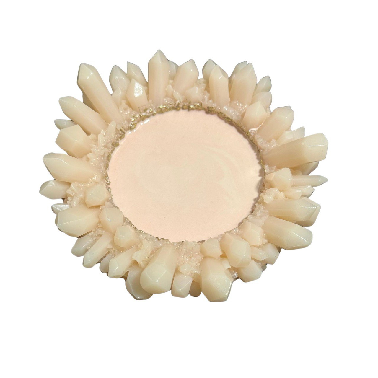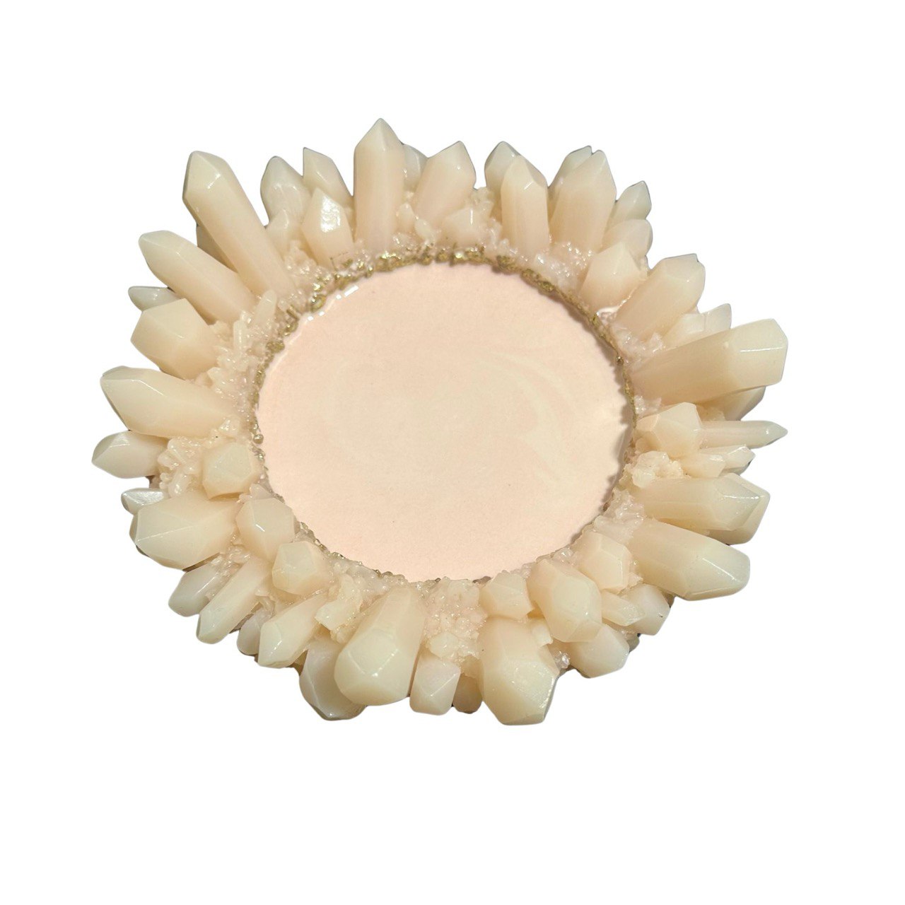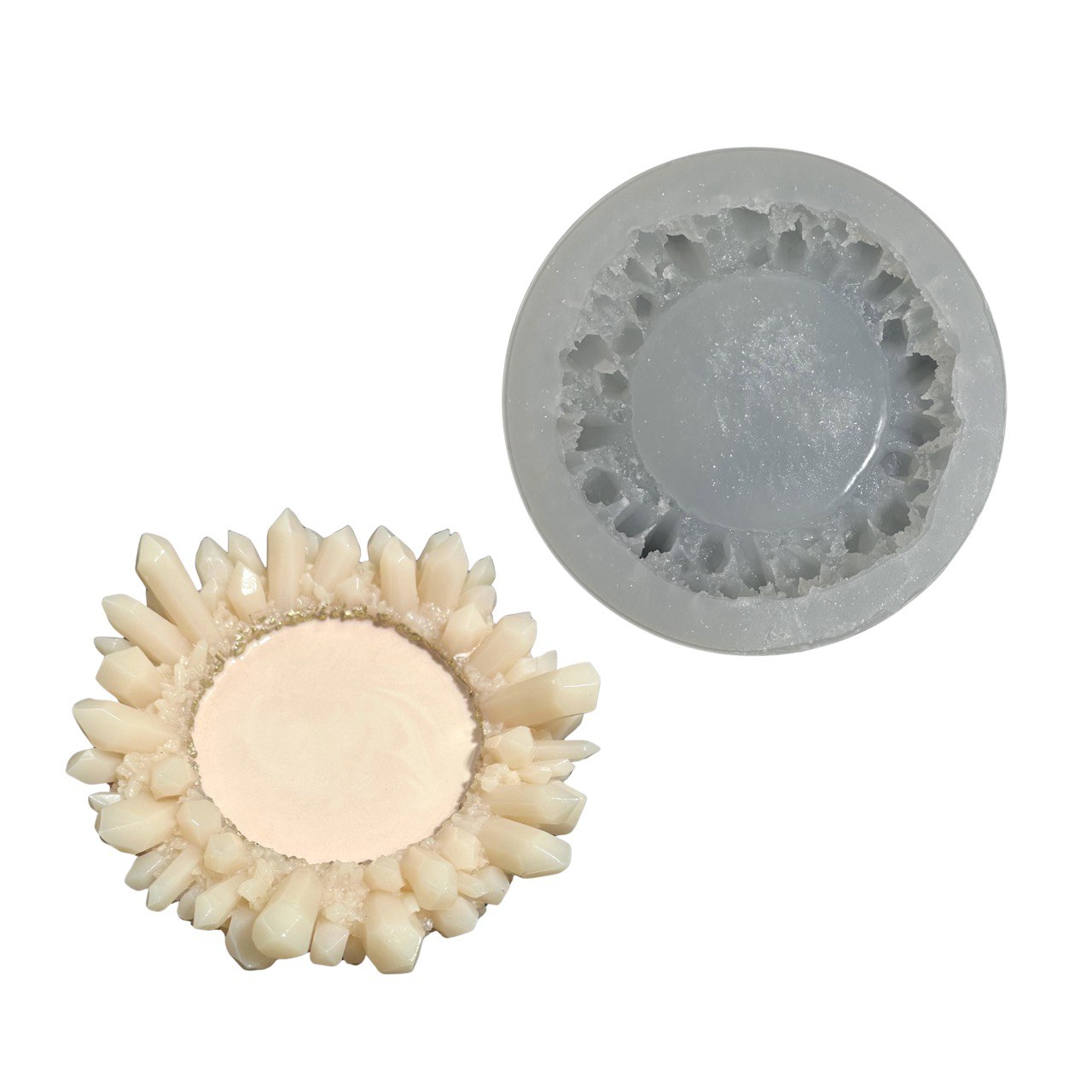 The design imitates natural crystals arranged in a circle with a smooth, round center. Perfect for making interior trays, jewelry holders, key dishes, candle bases, cosmetic organizers, and decorative pieces.