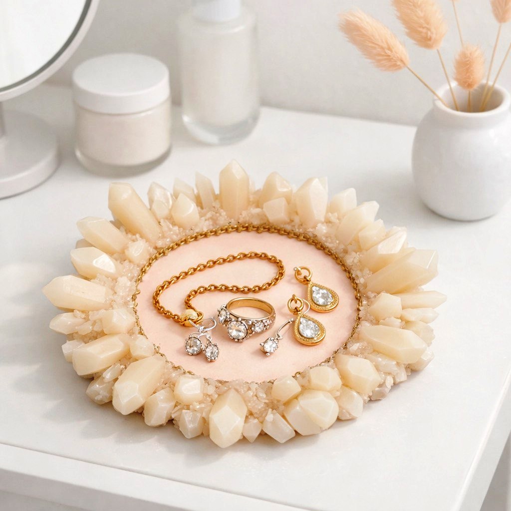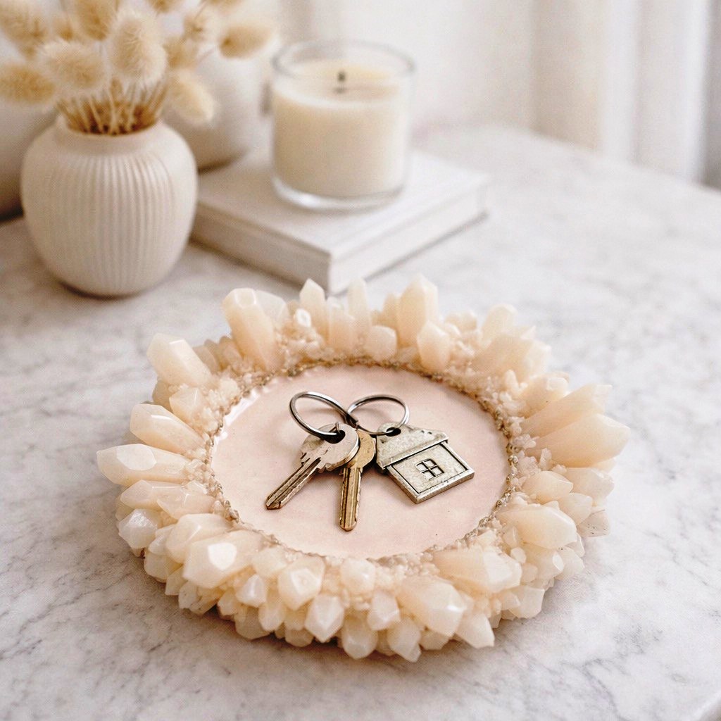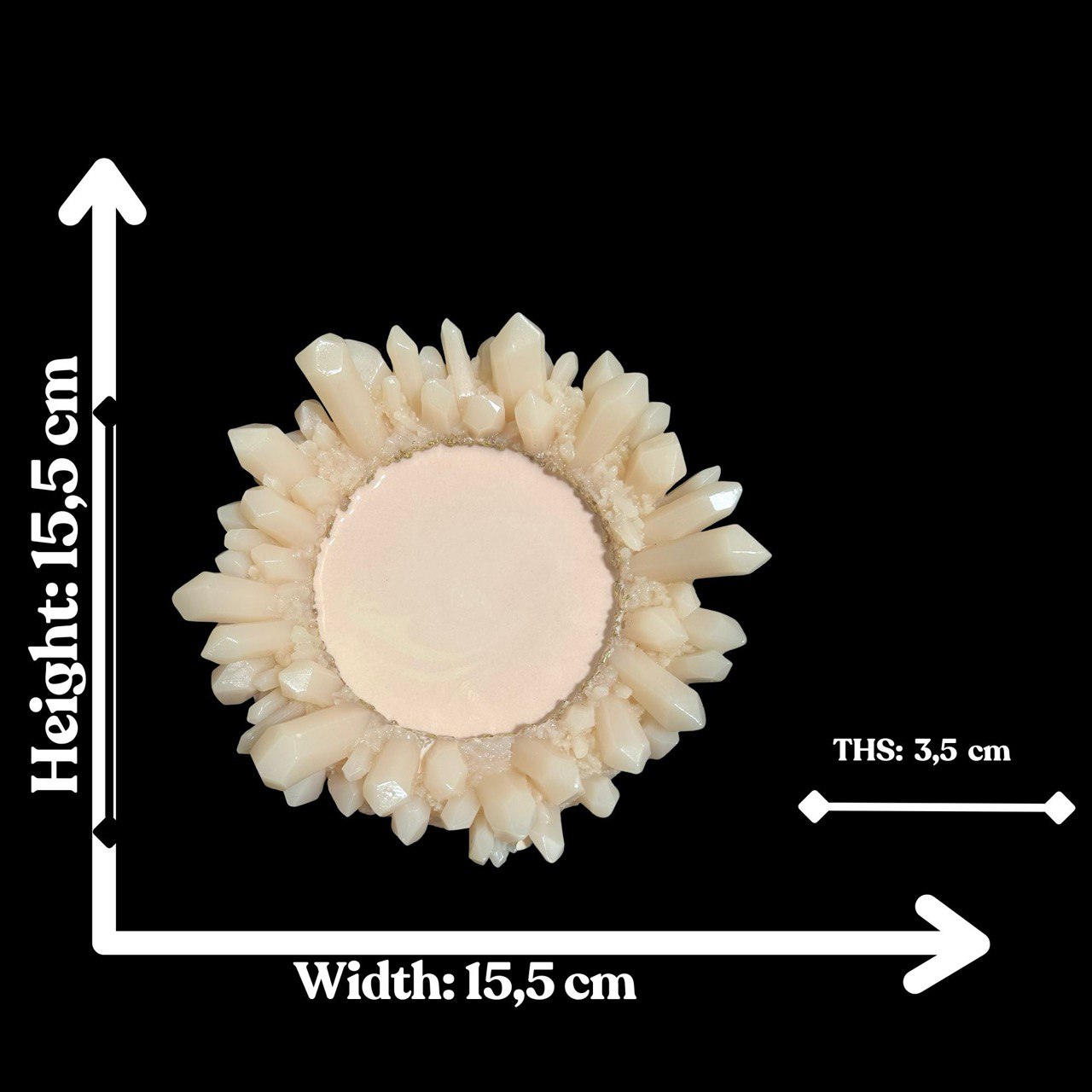 The design imitates natural crystals arranged in a circle with a smooth, round center. Perfect for making interior trays, jewelry holders, key dishes, candle bases, cosmetic organizers, and decorative pieces.