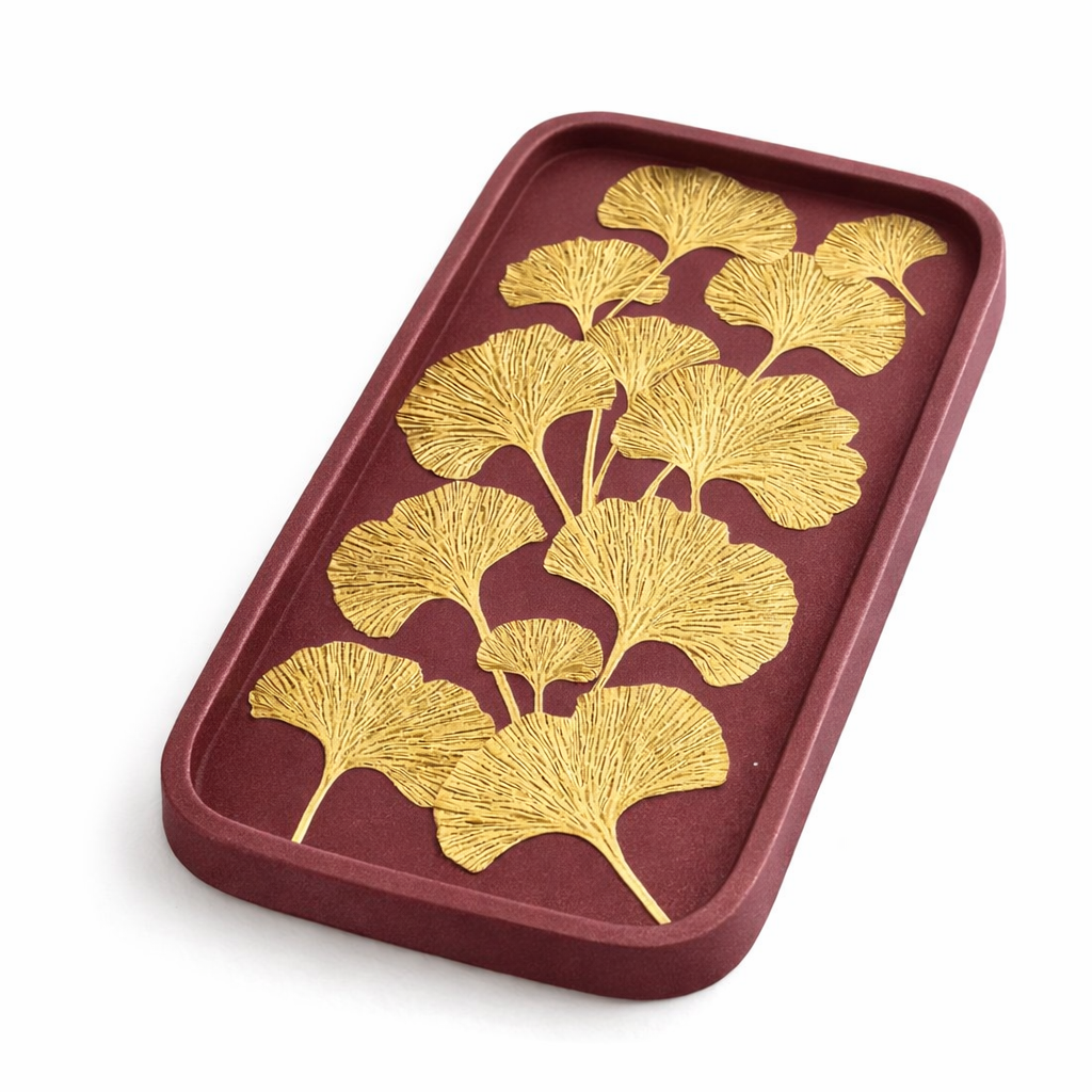 The design features delicate ginkgo leaves arranged in a natural organic composition, creating a modern decorative tray perfect for minimalist home decor.