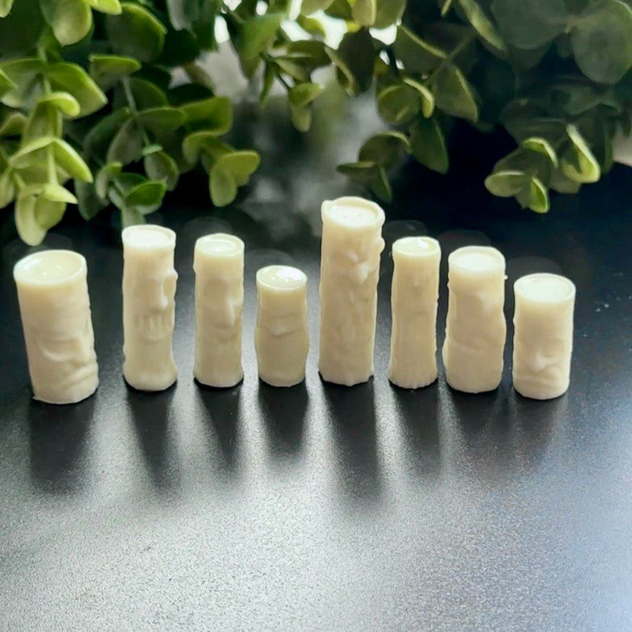 🗿 Mini Horror Face Charms – Set of 8 Creepy Totem Figures | 2.5–4 cm Tall | Resin Pendants for Keychains, Jewelry, Halloween Crafts & Gothic Decor