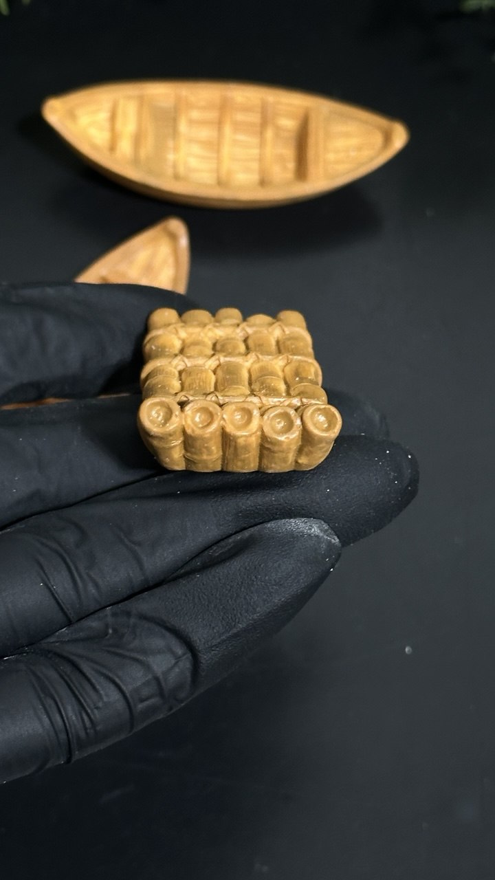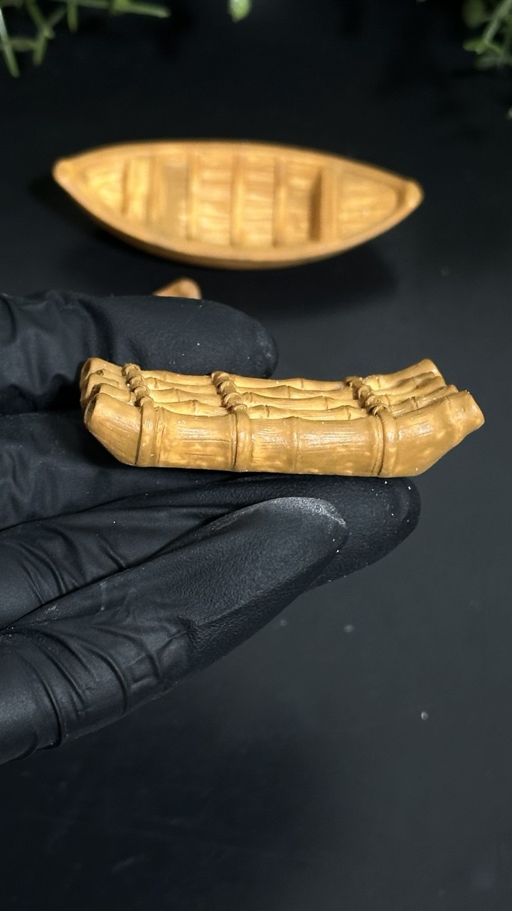 two wooden-style boats and one raft, designed for realistic resin casting and miniature scenes.